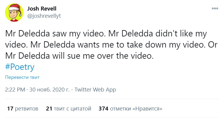 После этого ютубер Джош Ревелл снял ролик об Алессио, но тот пригрозил ему судом и потребовал удалить его. Ютуберу пришлось это сделать, потому что по его, словам у него нет столько денег на юристов, как у Деледды.